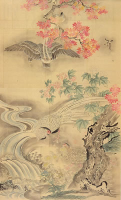四季花鳥図(秋) 安政4年(1857年)秋 舩津蘭山作 |