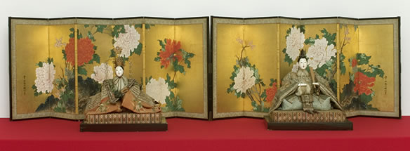 天保8年(1837年)作の内裏雛と雛屏風を展示 |