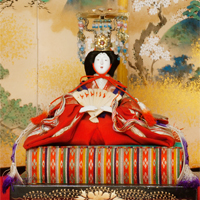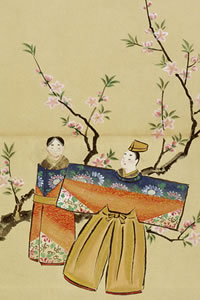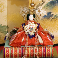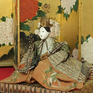 雛祭りと春の作品、天保8年作の内裏雛と雛屏風を展示