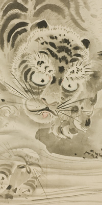 虎屏風と人物画を展示