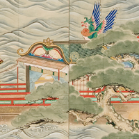神功皇后三韓退治舟艤の図屏風と春の花鳥画