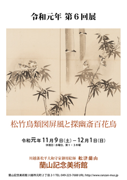 鶴図屏風と初冬の花鳥画を展示